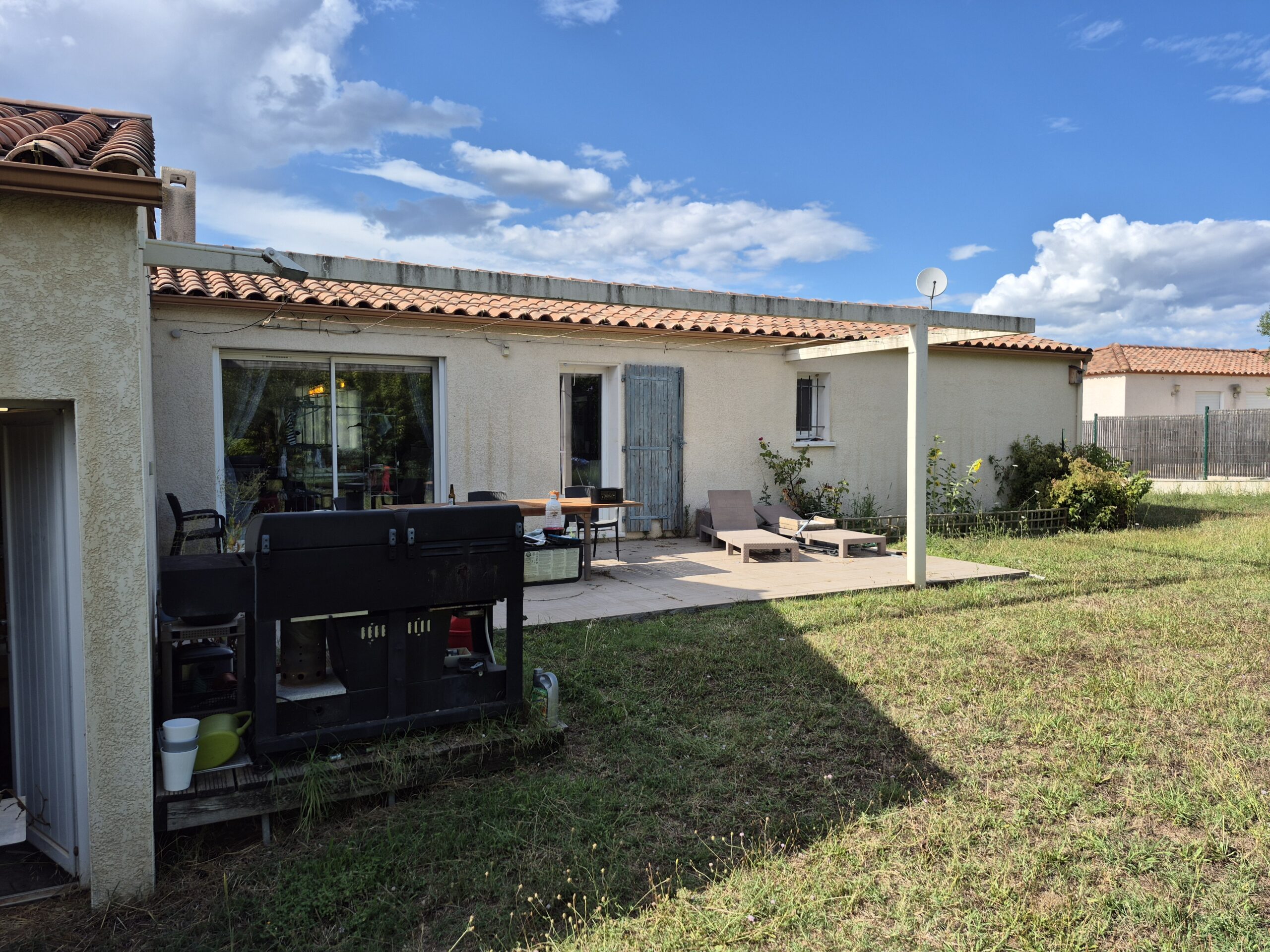 Découvrez la transformation spectaculaire d'une terrasse en un espace de vie lumineux grâce à cette véranda moderne en aluminium, une réalisation sur mesure signée COLADIS, votre expert basé à Paulhan. Installée à Fontanès, près de Montpellier, cette extension offre une nouvelle pièce à vivre ouverte sur un grand jardin, comme en témoignent les photos avant/après.