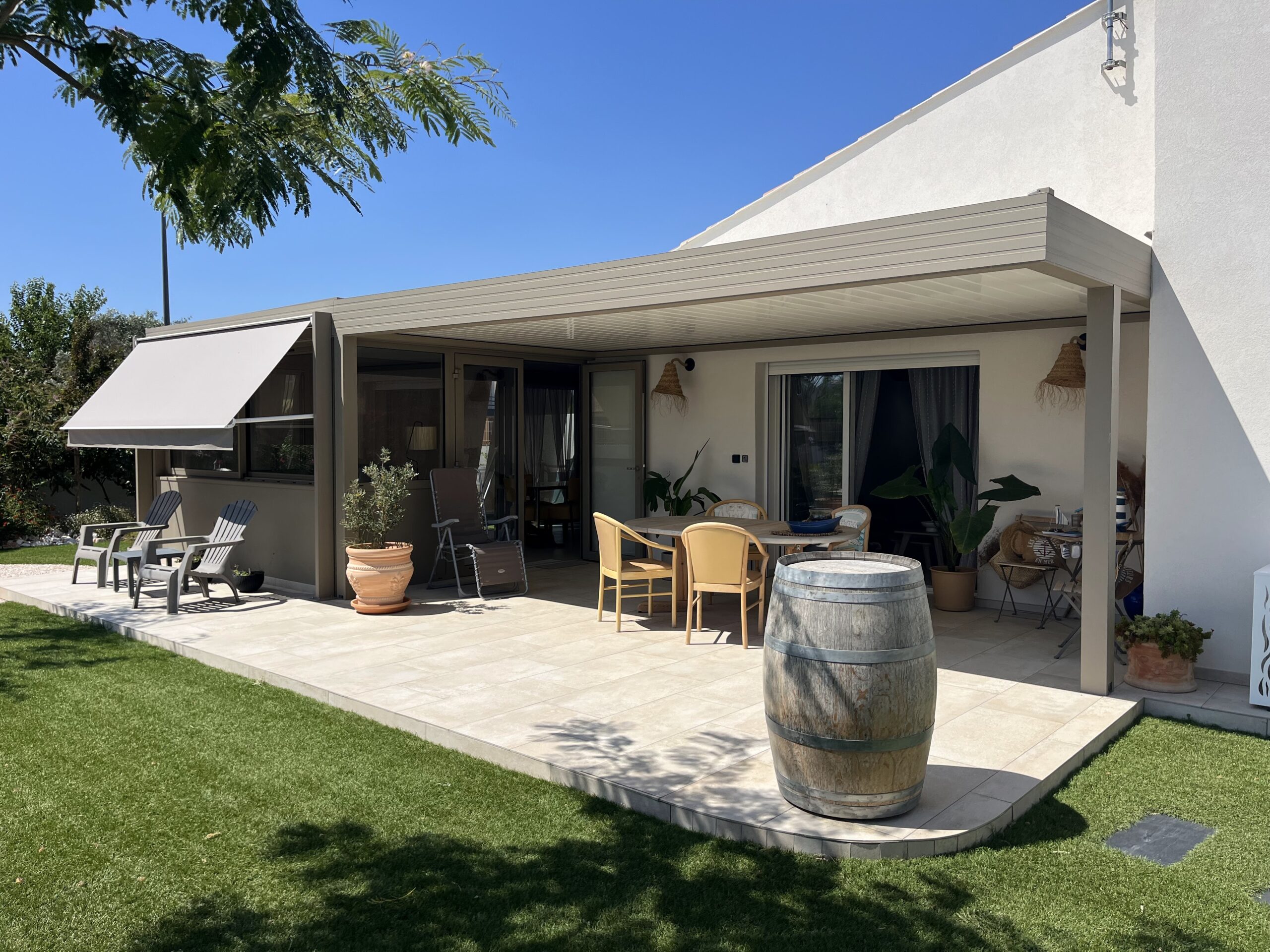 2 Projets en 1 : Véranda moderne & Pergola bioclimatique Aluminium Sable à Sauvian