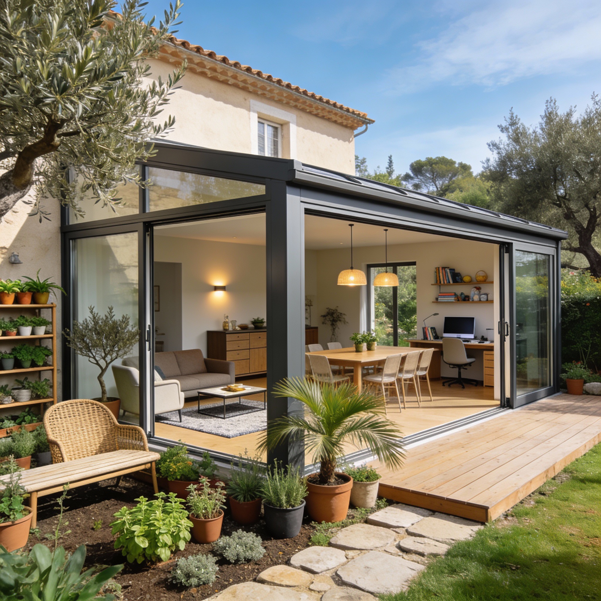 La liaison avec le jardin fait également partie des décisions. Terrasses, allées et espaces extérieurs sont analysés. Les ouvertures de la véranda extension sont placées pour faciliter les mouvements. Les seuils et éventuelles marches sont pensés pour rester confortables. Vous profitez ainsi pleinement de votre extérieur.